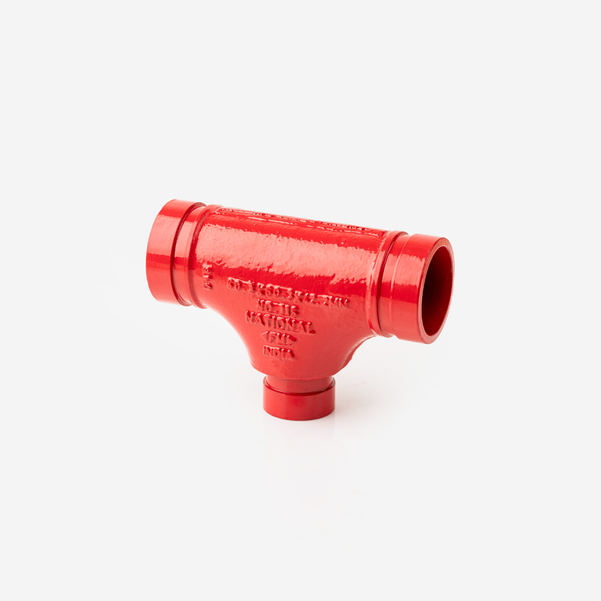Reducing tee stainless steel grooved fitting for unequal branch sizes.